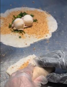 This quirky yet delightful dessert wraps scoops of ice cream (often taro or pineapple flavor) in a thin crepe with crushed peanut brittle and fresh cilantro. The first time I tried it, I was skeptical about the herb — but it works beautifully, adding a fresh note to the sweet nuttiness. Found mostly at night markets, it’s made right before your eyes, the peanut brittle shaved into fine flakes like edible snow. It’s a small but unforgettable taste of Taiwan creativity.